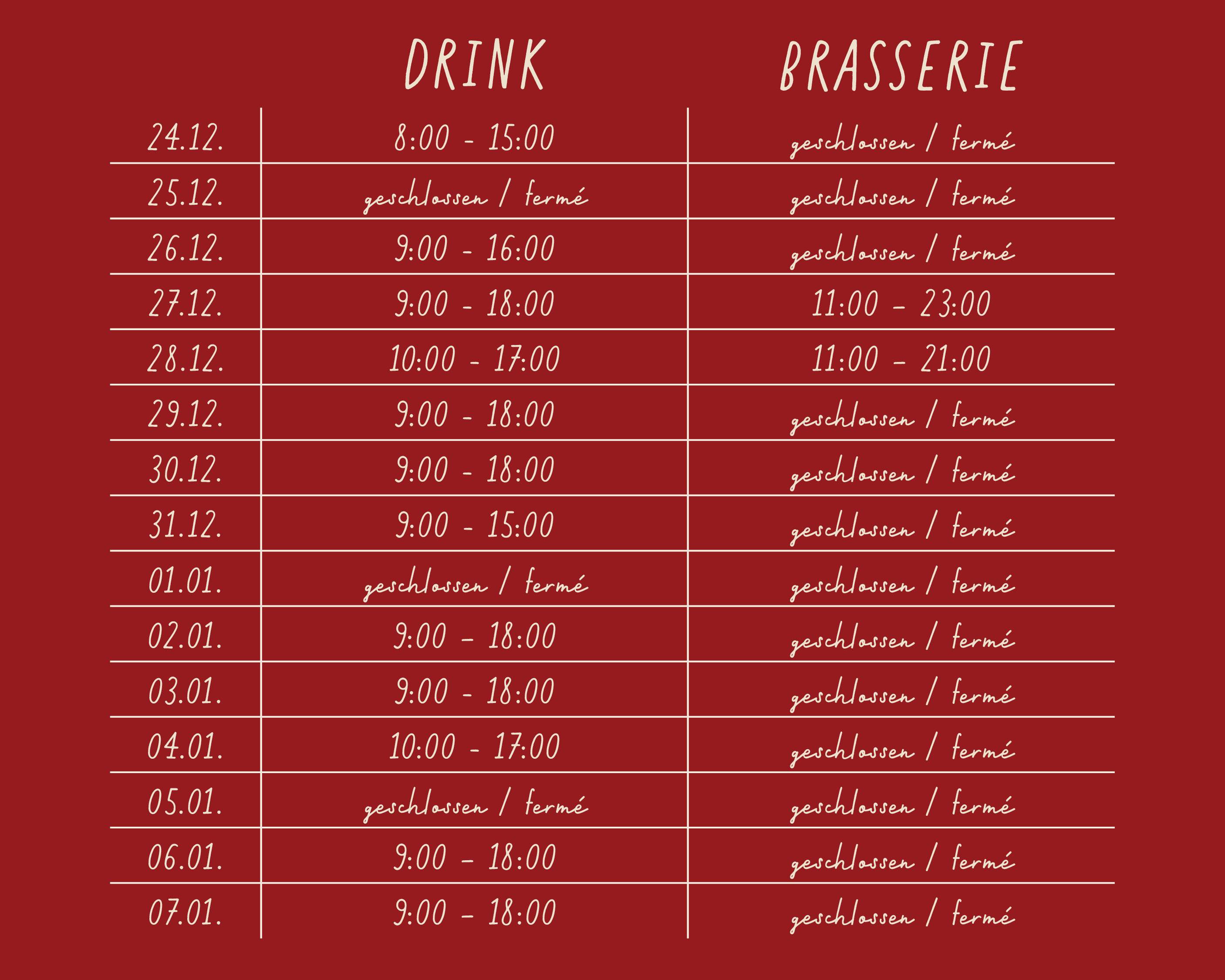 Samstag-Sonntag: 12 Uhr – 21 Uhr